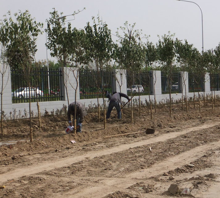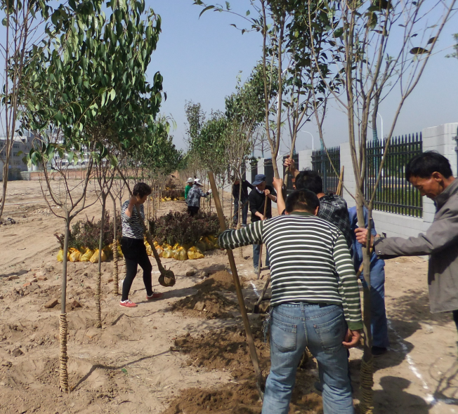 2015年4月17日,我部完成学院北大门内绿化工作。4月2日、3日按照学院计划完成对北大门绿化树苗的考察、询价,4月15日至4月17日完成对所有树苗的栽种,共栽种6600株红叶小檗,500株大叶女贞。
